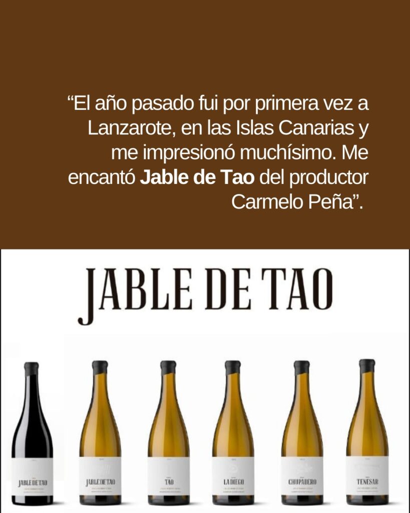 «El año pasado fui por primera vez a Lanzarote, en las Islas Canarias, y me impresionó muchísimo. Me encantó Jable de Tao @jable_de_tao del productor Carmelo Peña.