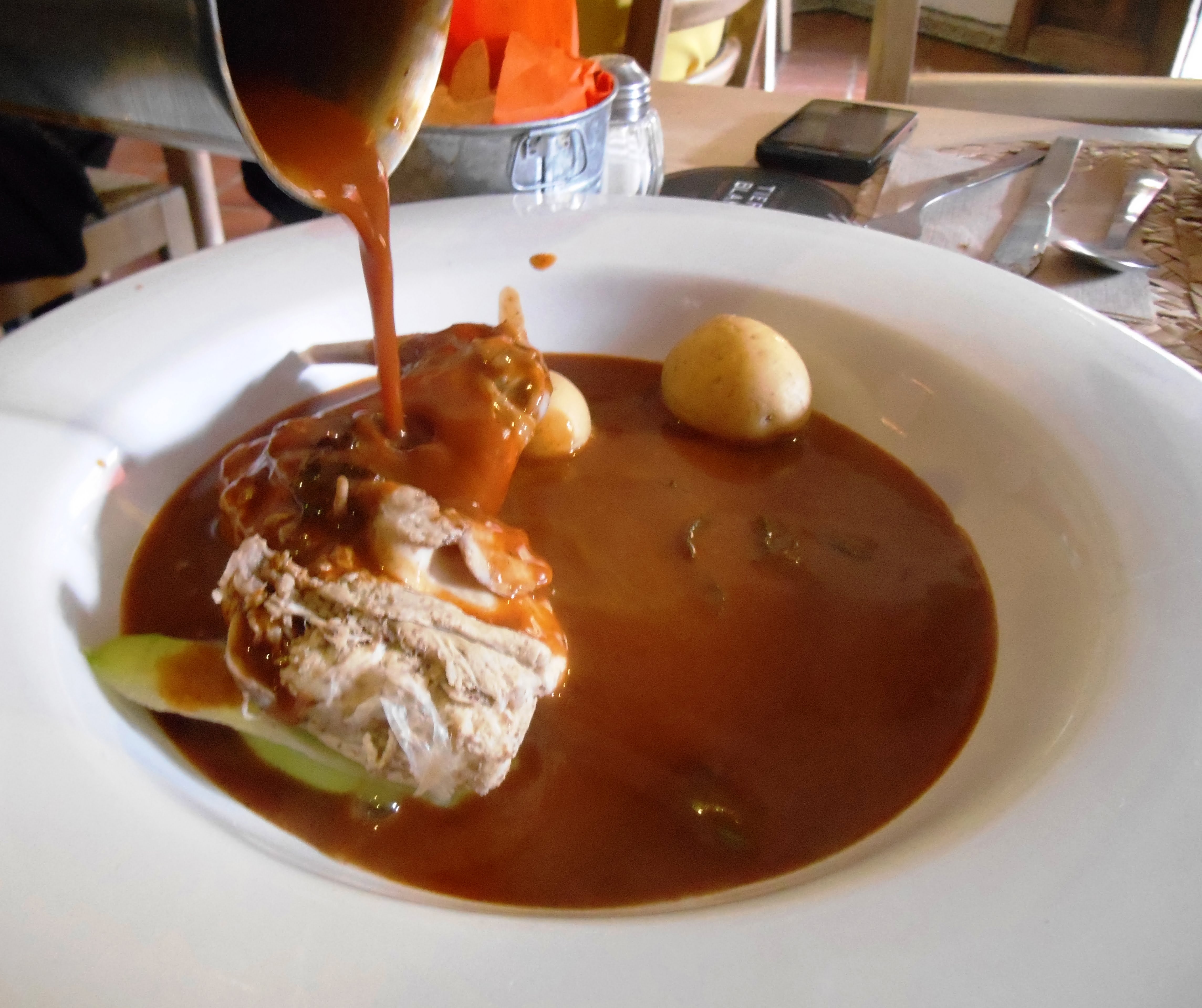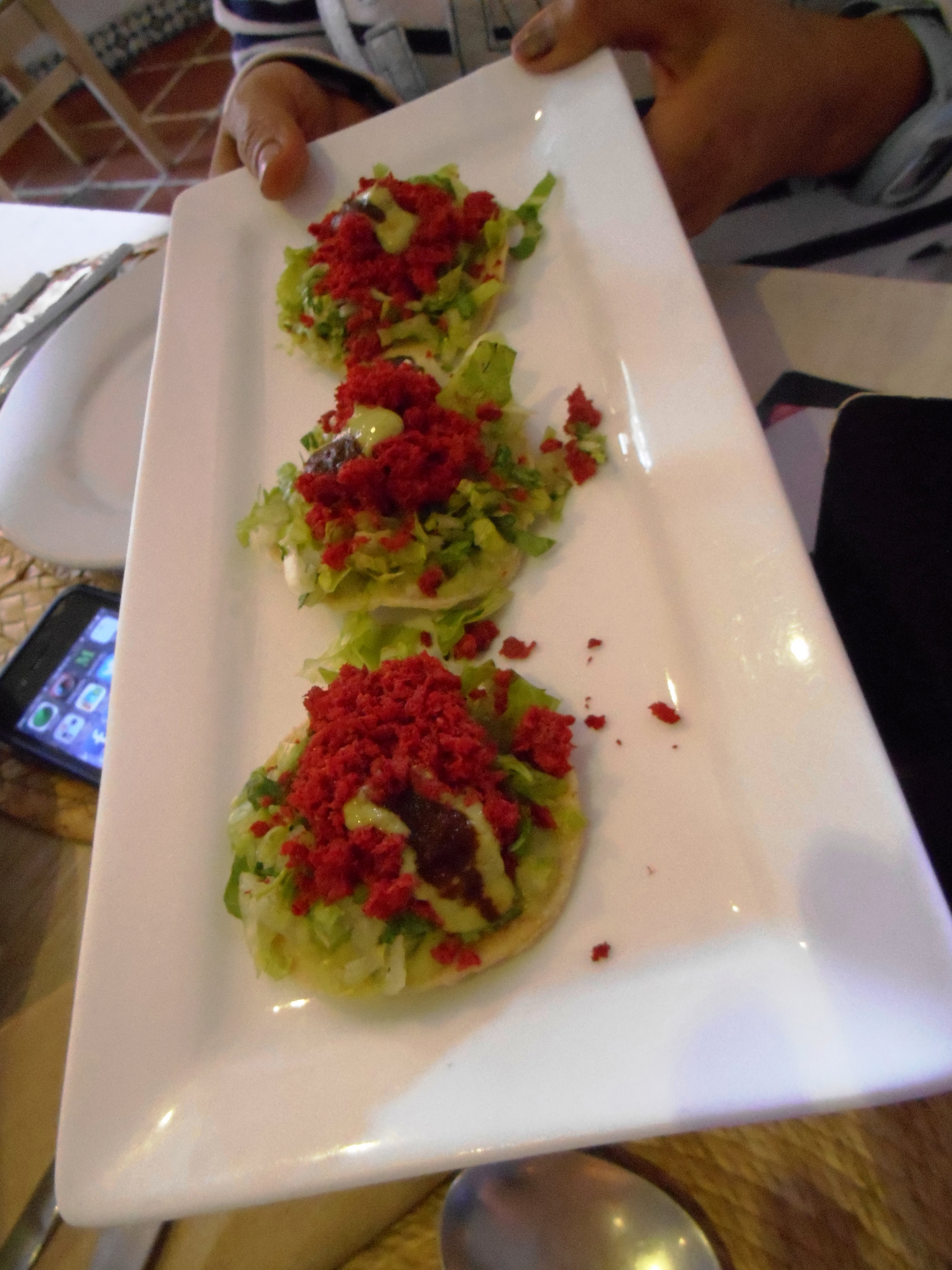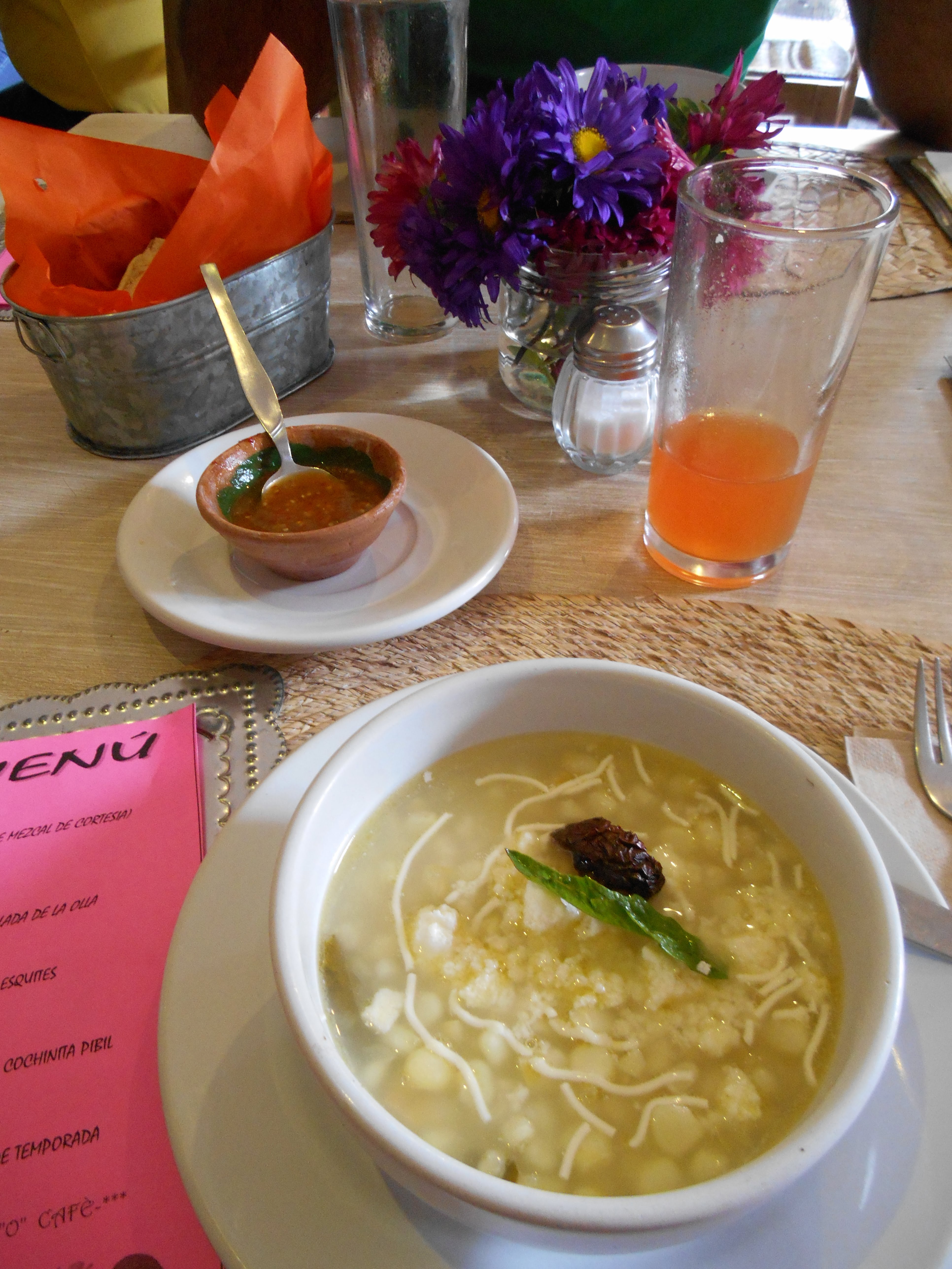 El lugar está decorado con un claro toque tradicional: colorido, rico en tejidos y texturas, combinando lo rústico con lo sutil. El menú ofrece la fórmula del día o se pueden pedir platillos tradicionales entre los que destacan moles, tlacoyas, esquites, salsas de chiles, tamales, entre otras delicias. Me sorprendió que sin ser sofisticado, los platos muestras delicadeza a la vista y al paladar.