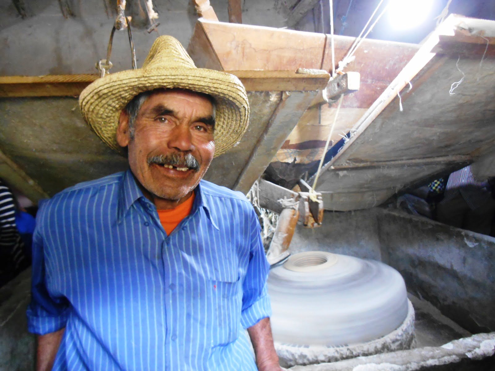 Manutoño tiene setenta años, nativo de Mucumpate es analfabeta, pero lleva perfectamente las cuentas de las básculas y de los libros. Narra que para moler un saco de 50kg de trigo, se tarda cuatro horas y produce aproximadamente 30 sacos a la semana. El grano proviene de las poblaciones cercanas de Gavidia, Santo Domingo, Chachopo y Apartaderos. En la molienda, también trabajan sus hijos Jesús Eduardo, Alirio y Antonio, quienes además siembran papas, zanahorias y trigo.
