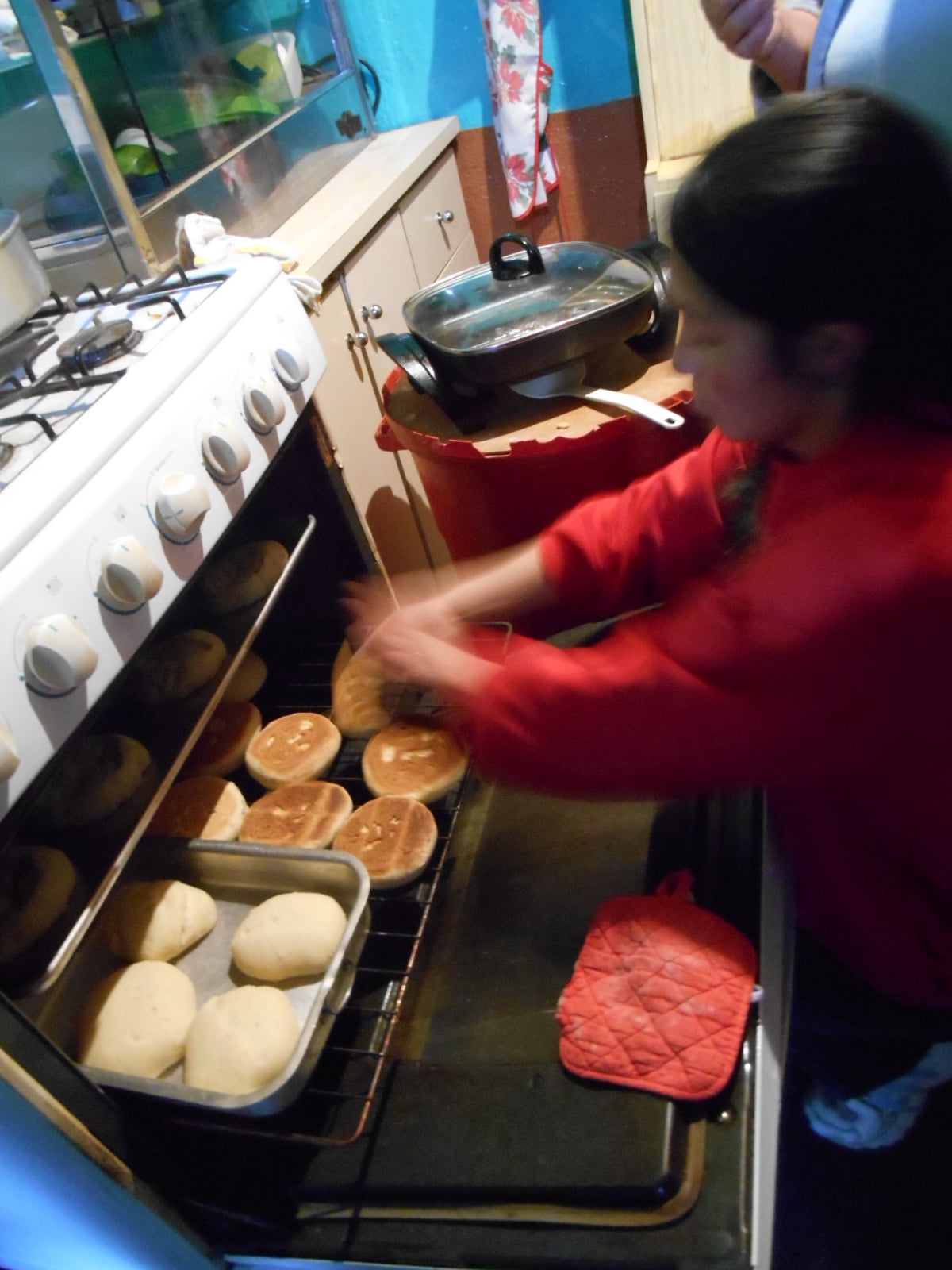 El pan criollo es de masa suave y miga esponjosa, se elabora con harina de trigo, melao de papelón con anís, manteca y agua. En el caso del hecho con papas, lo aprendió recientemente como parte del proyecto Páramo Andino, que animaba a los lugareños a explorar otros usos del tubérculo. Todos los panes se amasan a mano y hasta hace pocos años se cocían en un horno de piedra y leña, ahora se hace a gas.