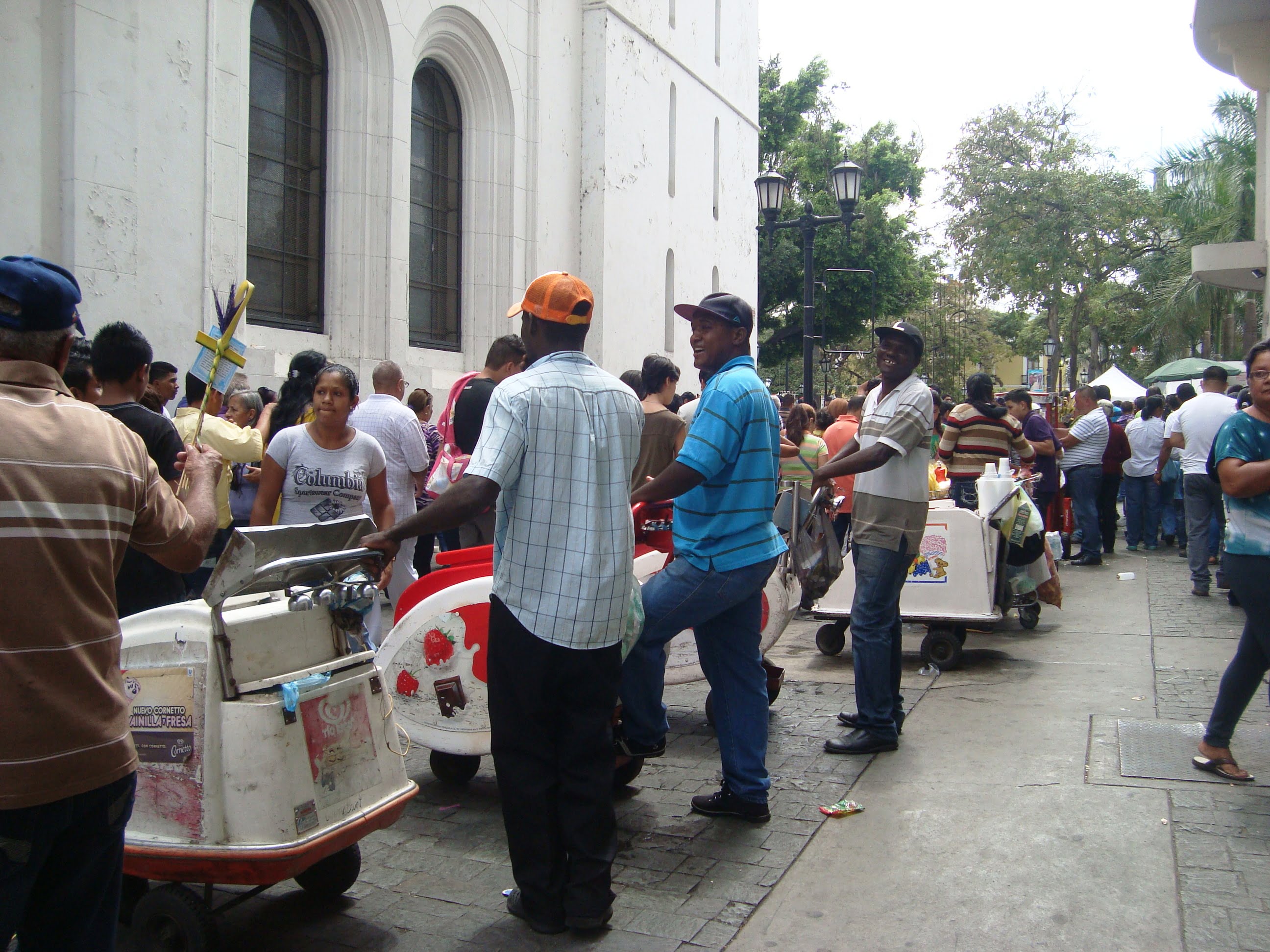 En otros casos, preparaciones que se ven todo el año como churros, cotufas, empanadas, bollitos aliñados. La mejor manera de mitigar el calor es con helados, cepillados, raspados, chicha, jugos de frutas y papelón con limón. Por cierto, éste último resultó el más popular, no hubo un solo templo donde no nos topásemos con alguno a su alrededor. Un dato curioso, es que al mejor estilo maracucho, no falta el café negro hirviendo para combatir el calor, con calor.